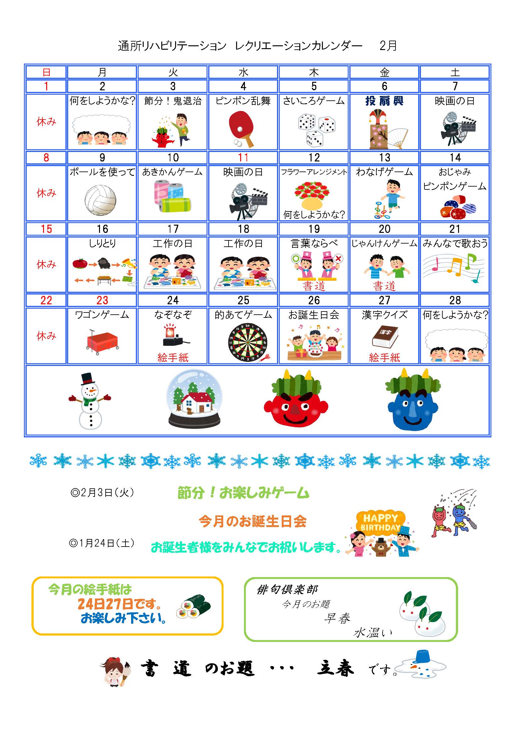 通所リハビリテーション レクリエーションカレンダー
