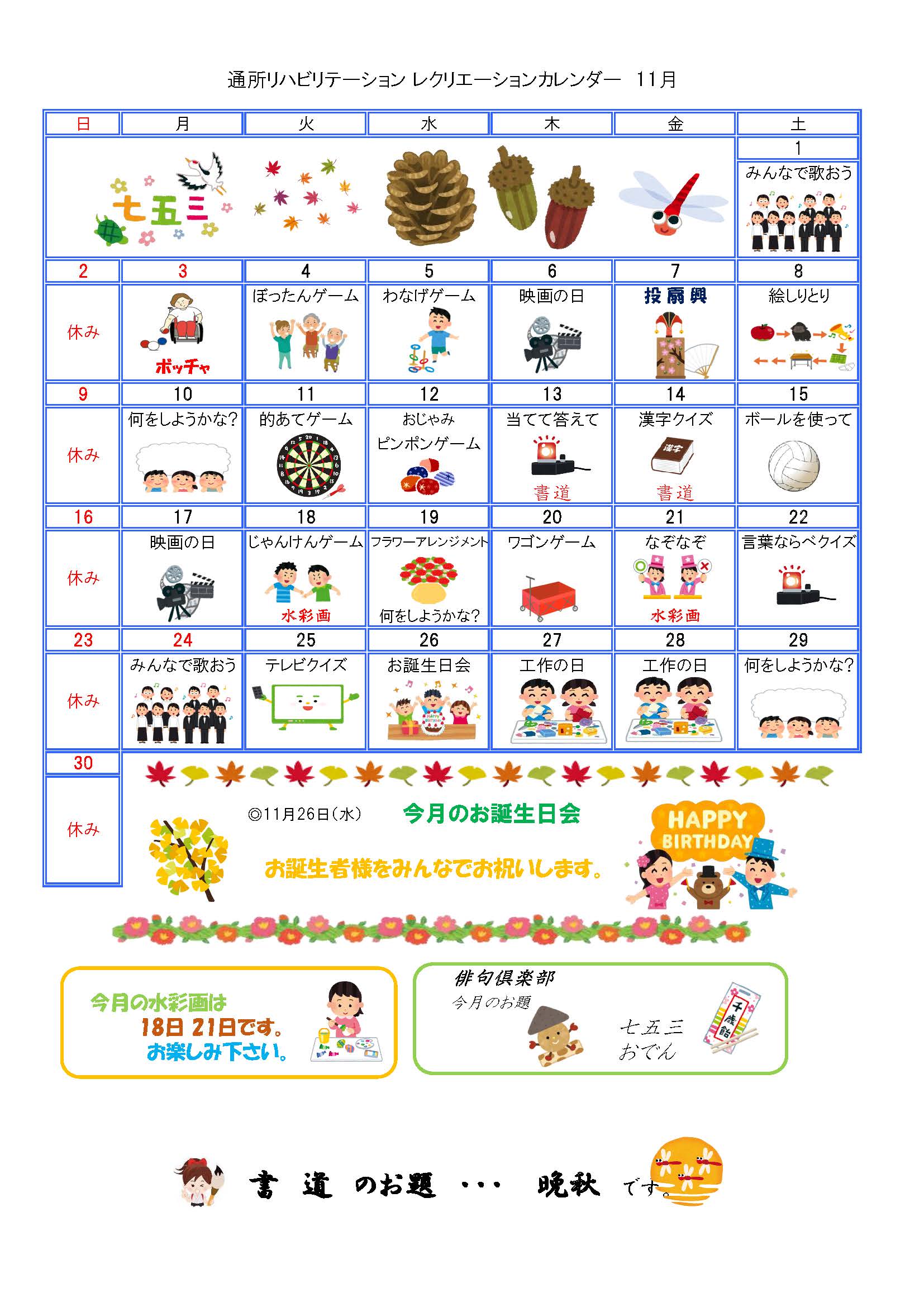 通所リハビリテーション レクリエーションカレンダー